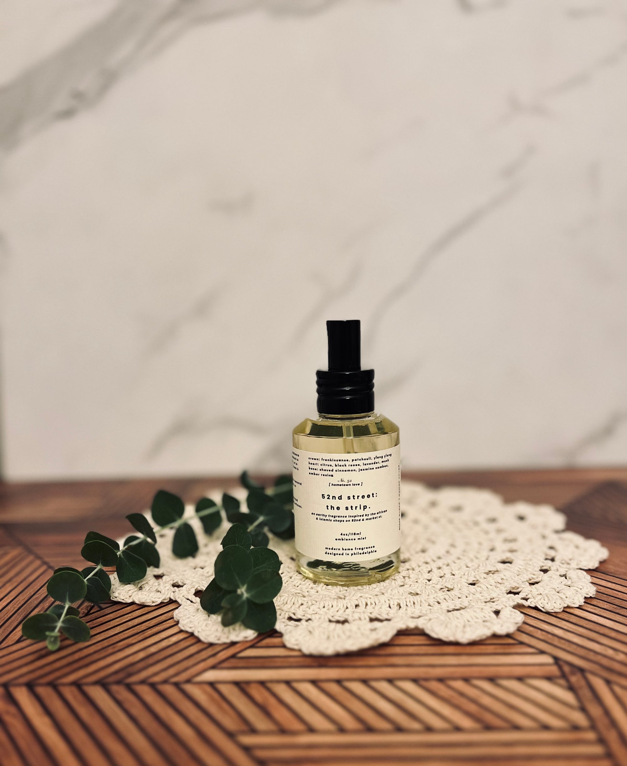 our ambience mists are formulated with perfume grade materials. This mist should be sprayed on door mats, curtains, throw pillows, etc. for a longer lasting scent. The high-quality formulation ensures a lasting and luxurious scent experience on items such as door mats, curtains, and throw pillows.
